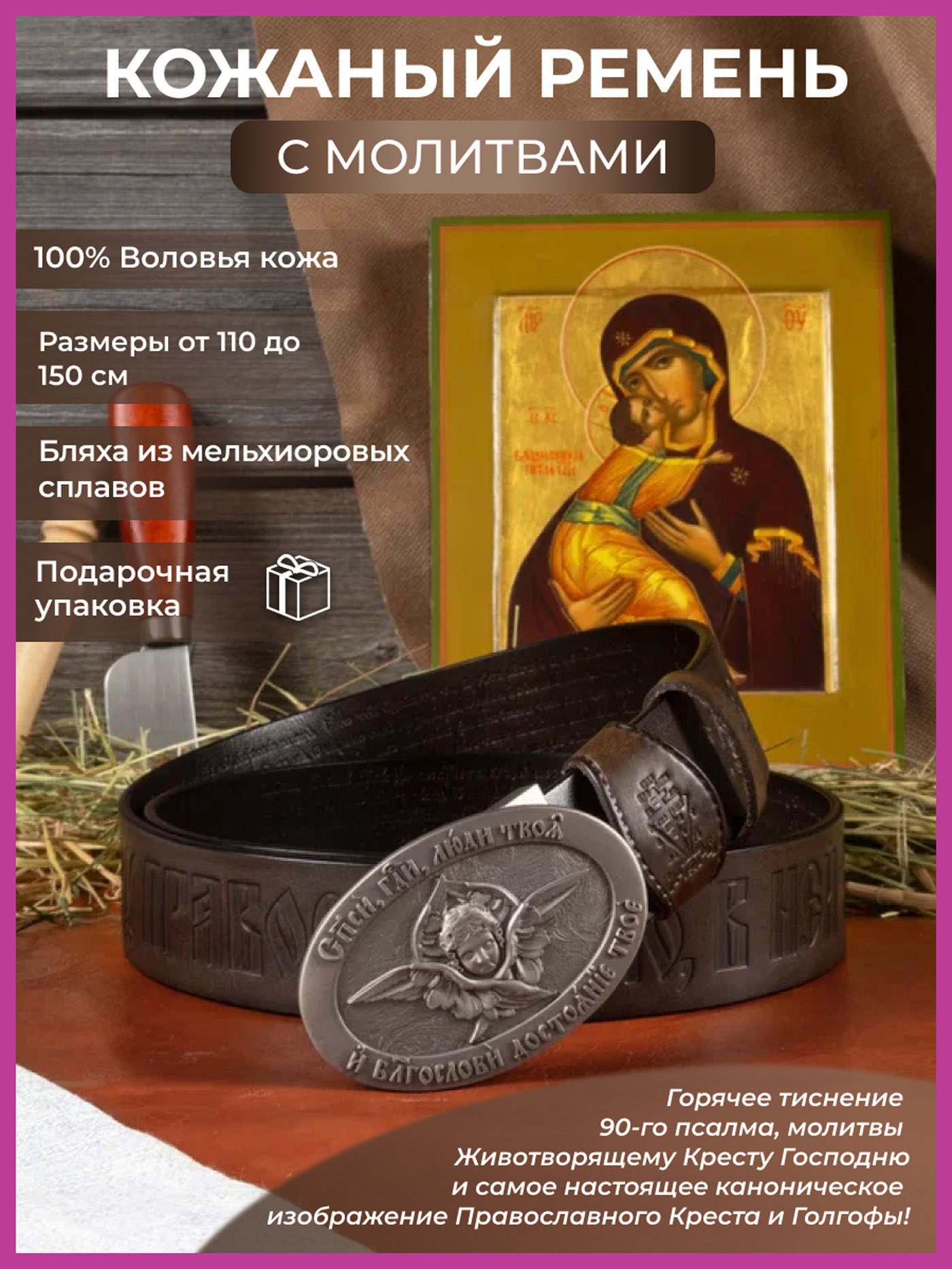Ремень отличный, размер соответствует заявленному, дефектов и изъянов нет, запаха нет, тиснение нанесено чётко.Покупала в подарок своего брату. Подобных Настоящих Православных ремней еще не встречала