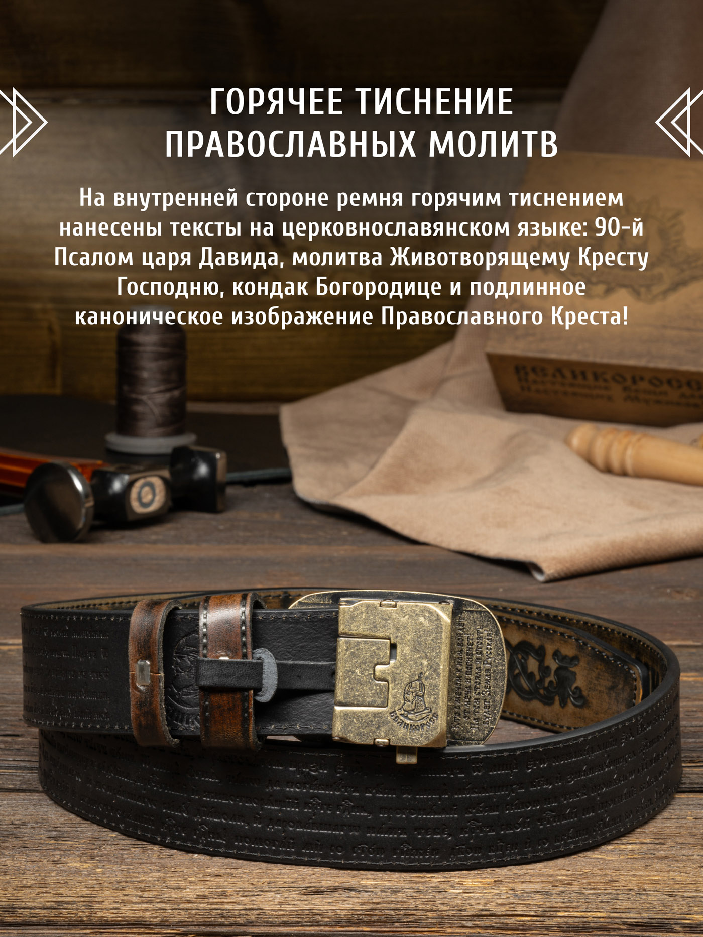 - горячее тиснение на коже логотипа и узоров, с молитвенными текстами и без них;