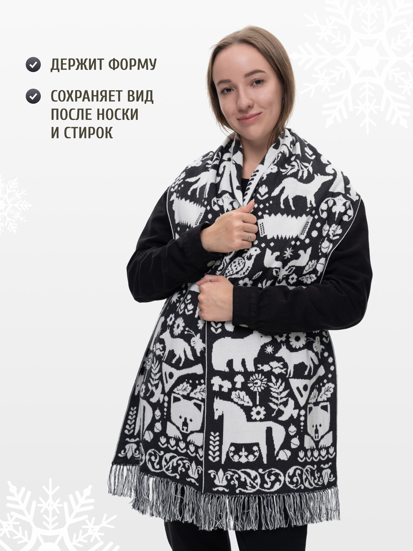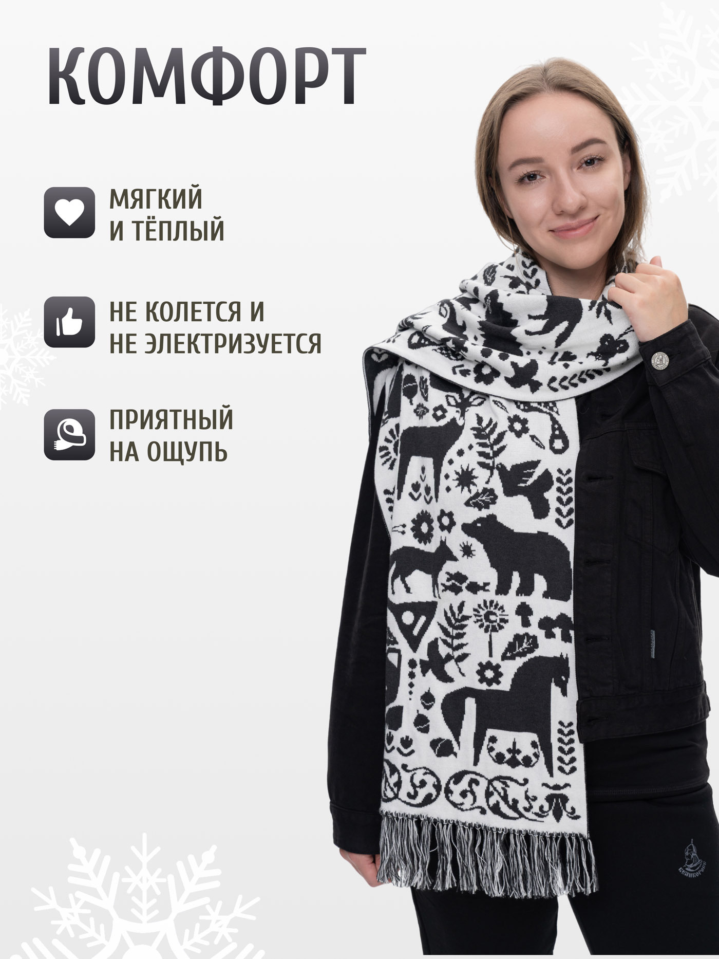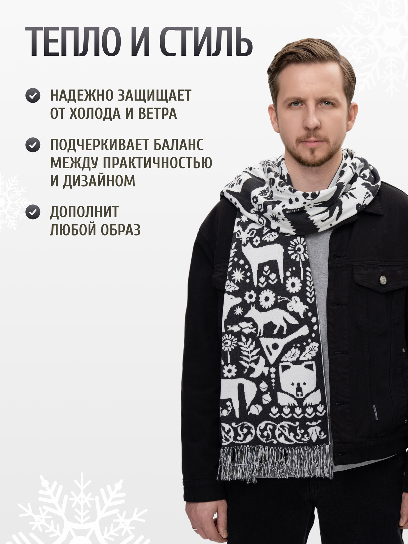 шарф качественный, думаю подойдет для любого сезона, довольно плотный, длинный и широкий, но не чрезмерно, разве что под зимнюю куртку возможно будет большеват, но тут уже вопрос вашей одежды, для меня супер вещь!