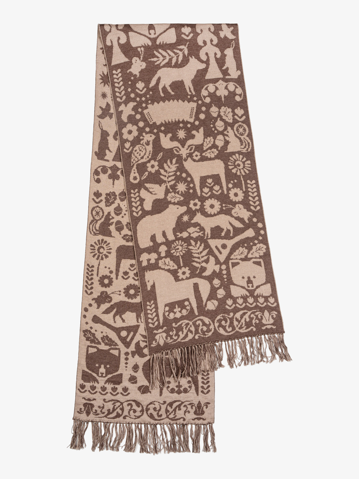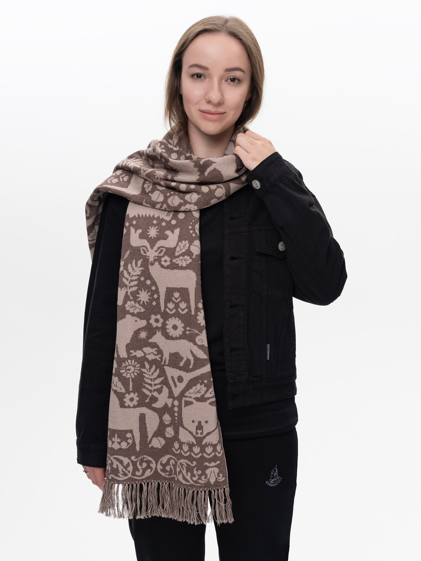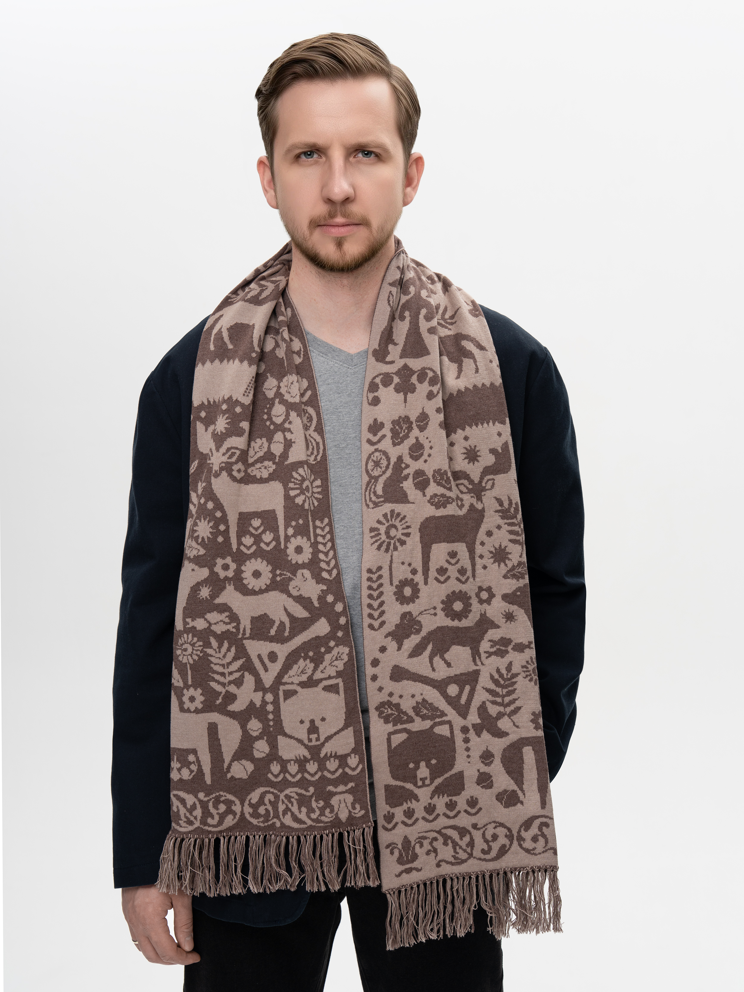Шарф «Таинственный Лес» коричневого цвета (С бахромой)