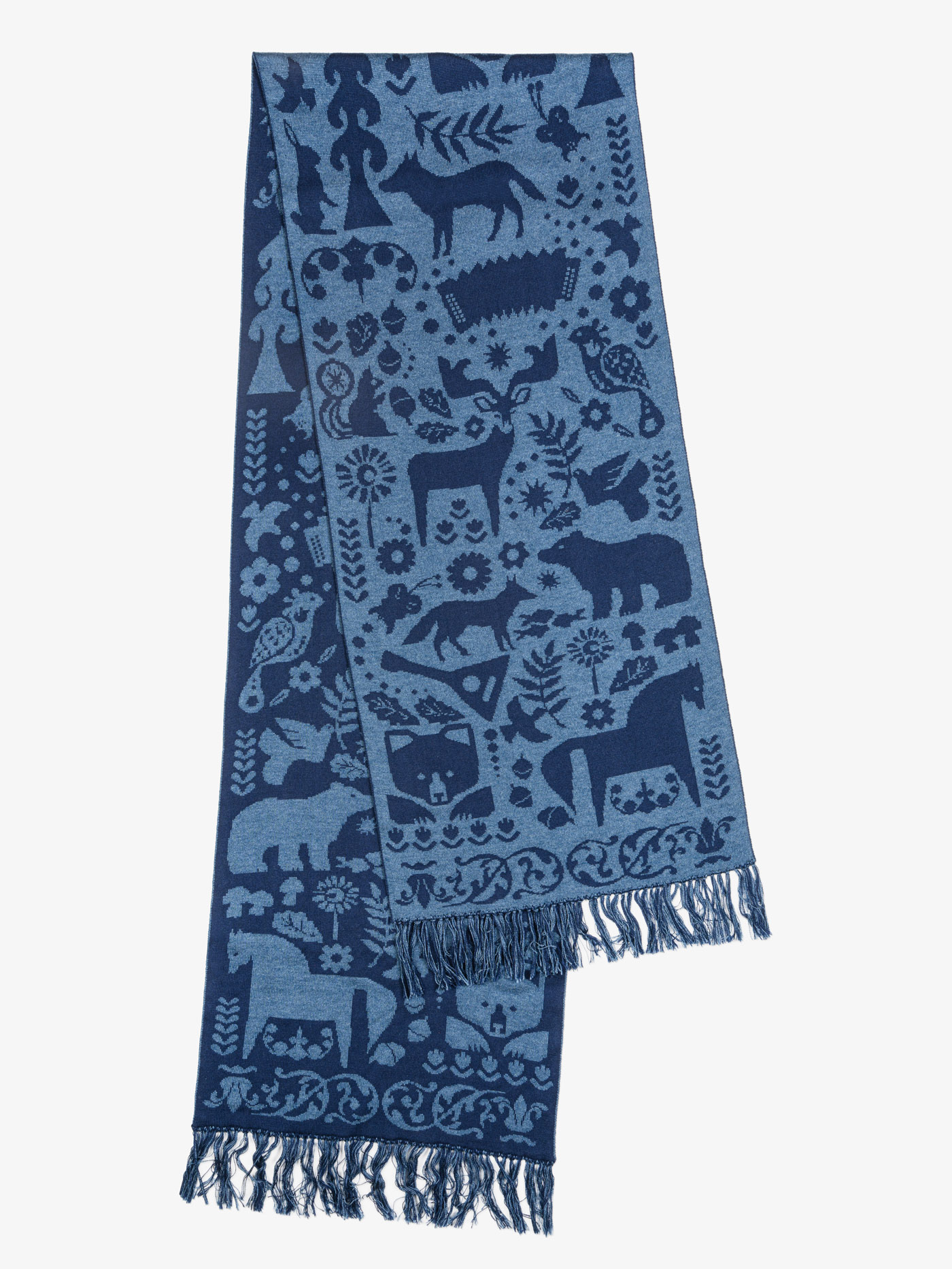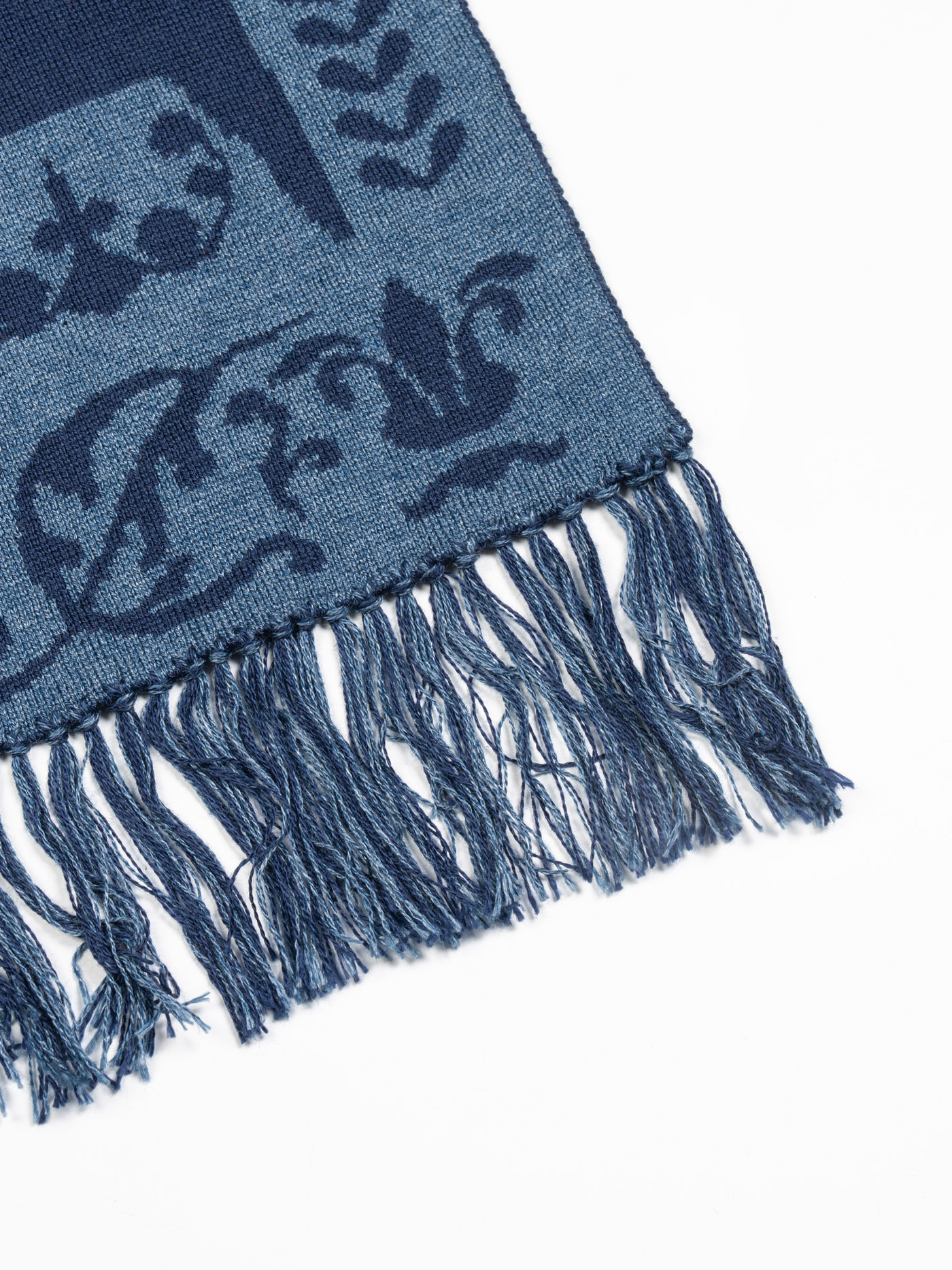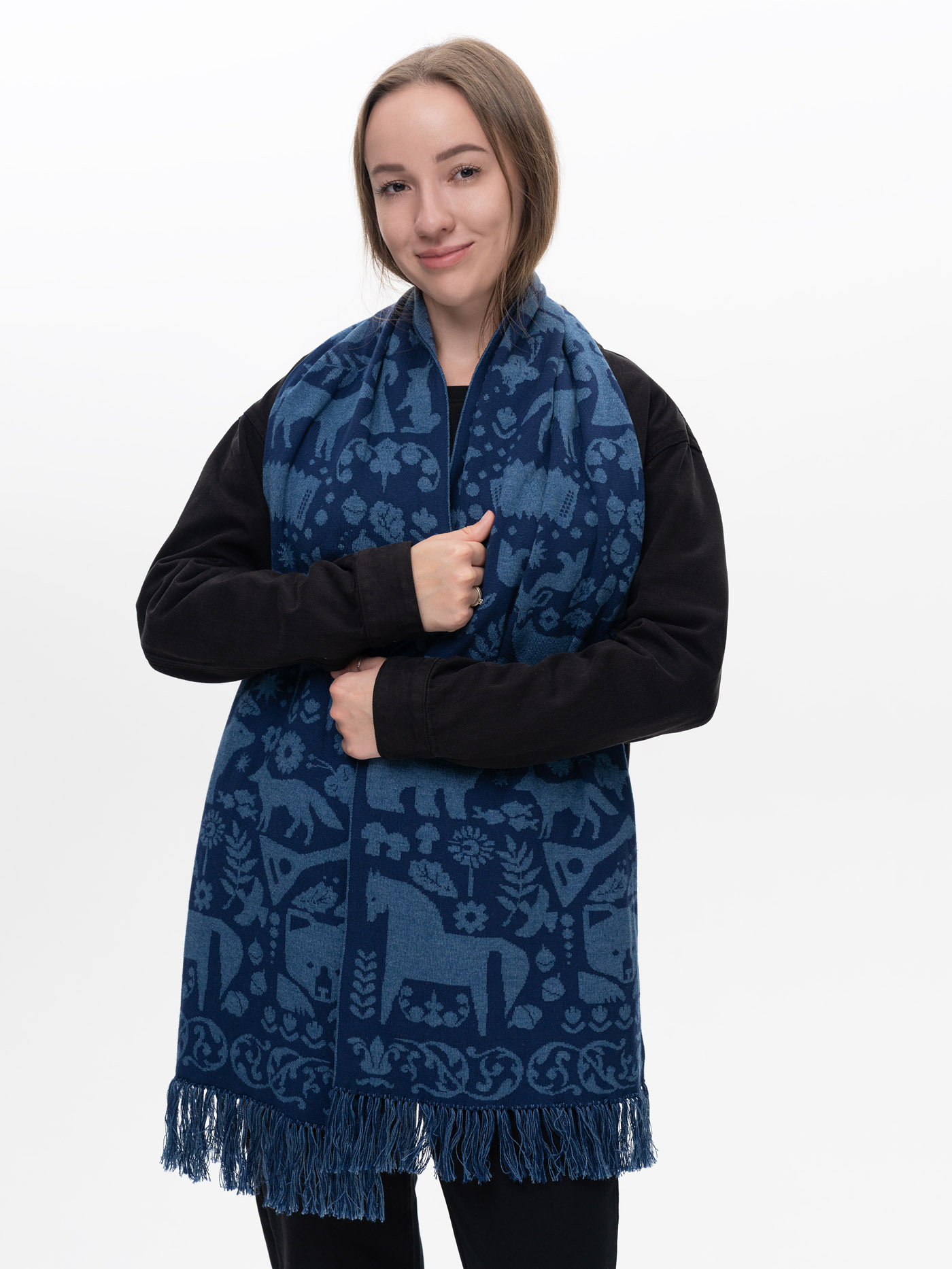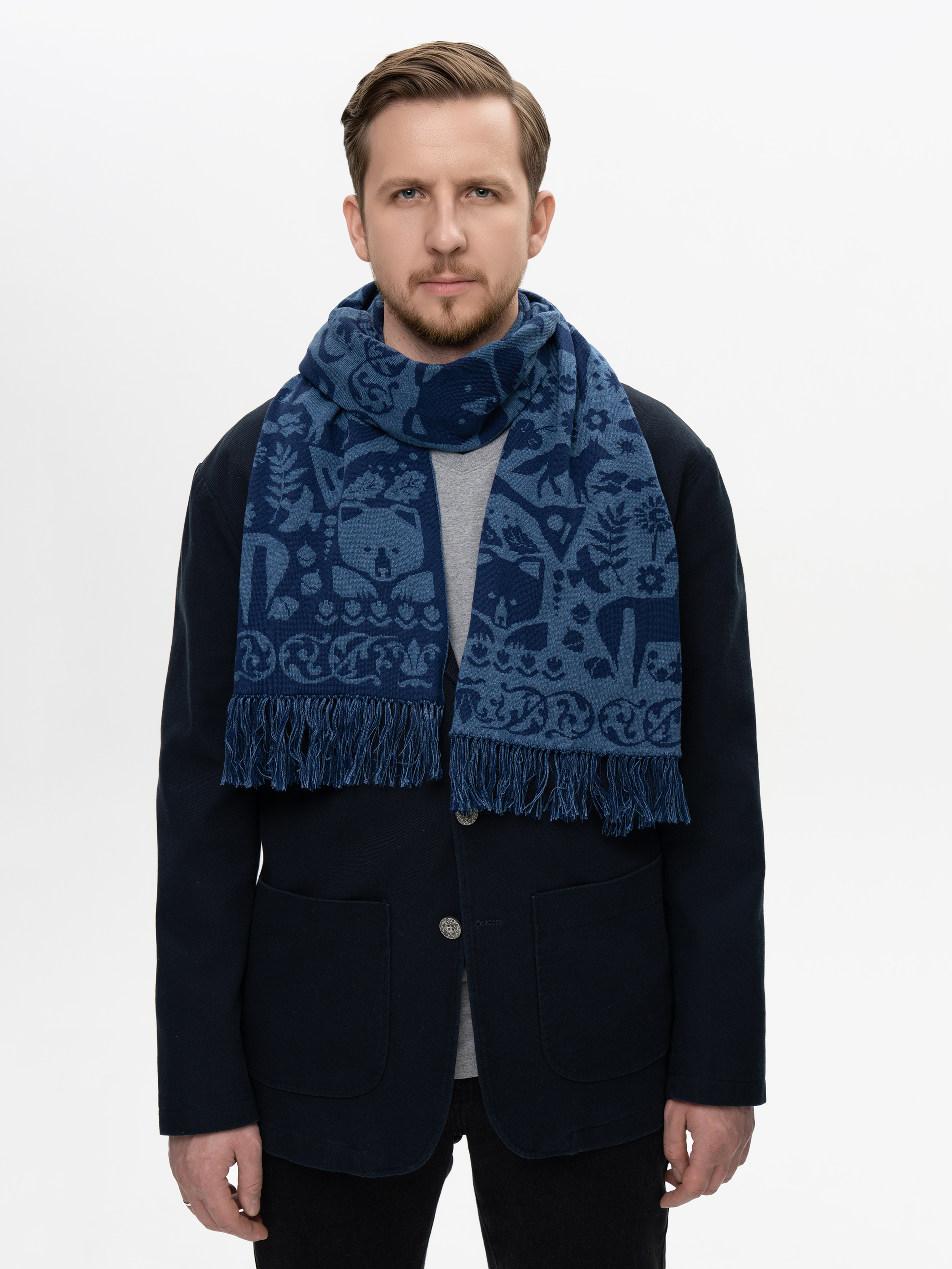 Шарф «Таинственный Лес» синего цвета (С бахромой)