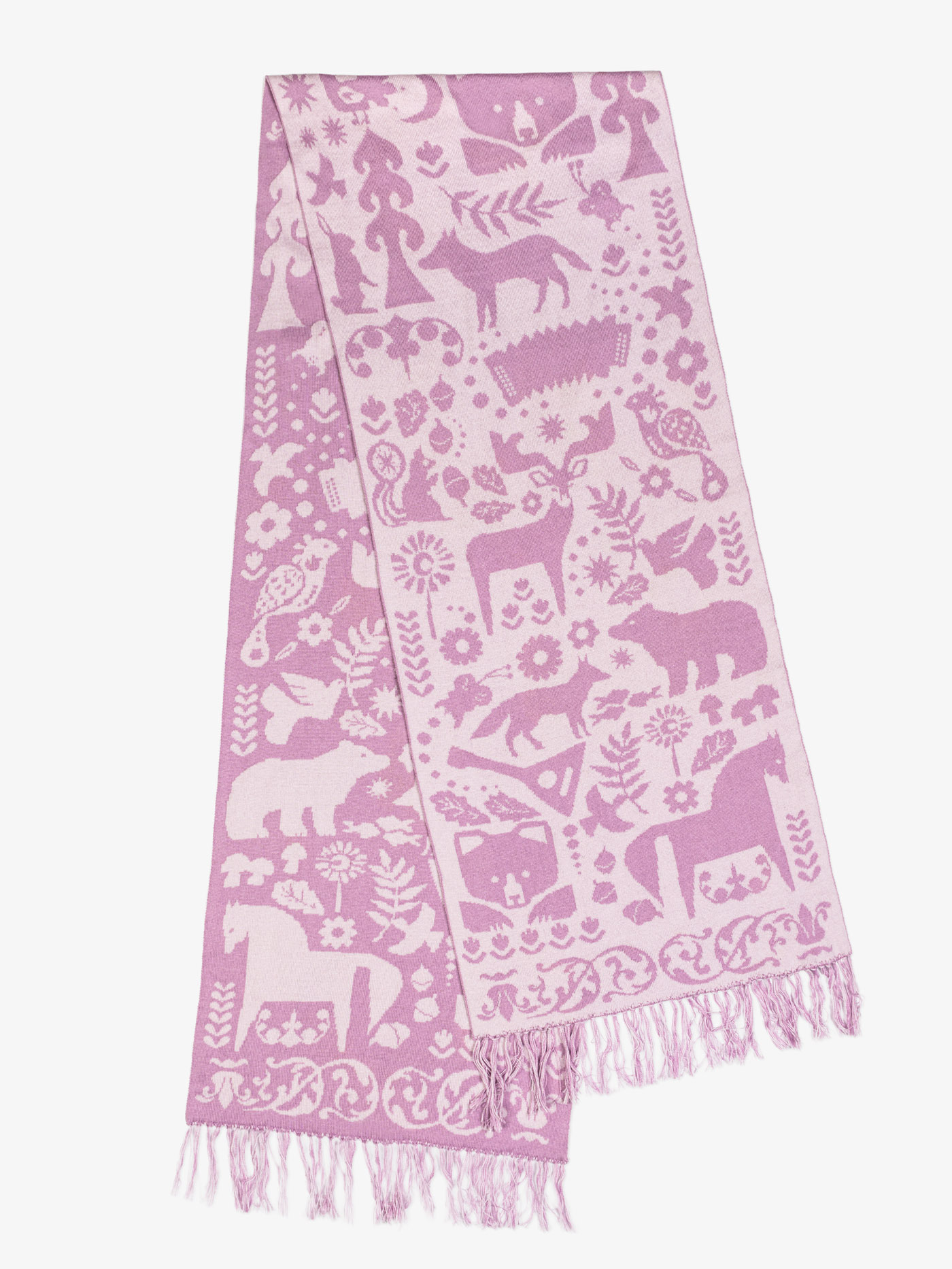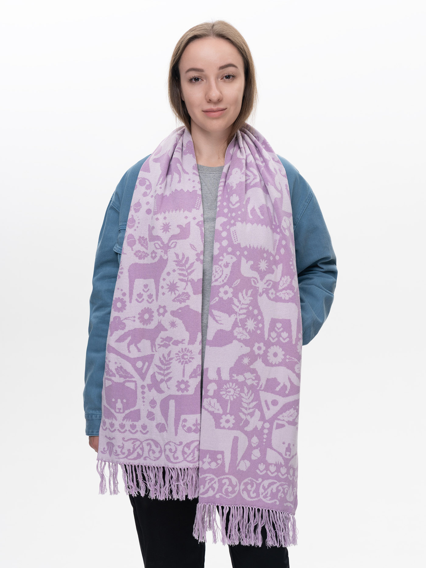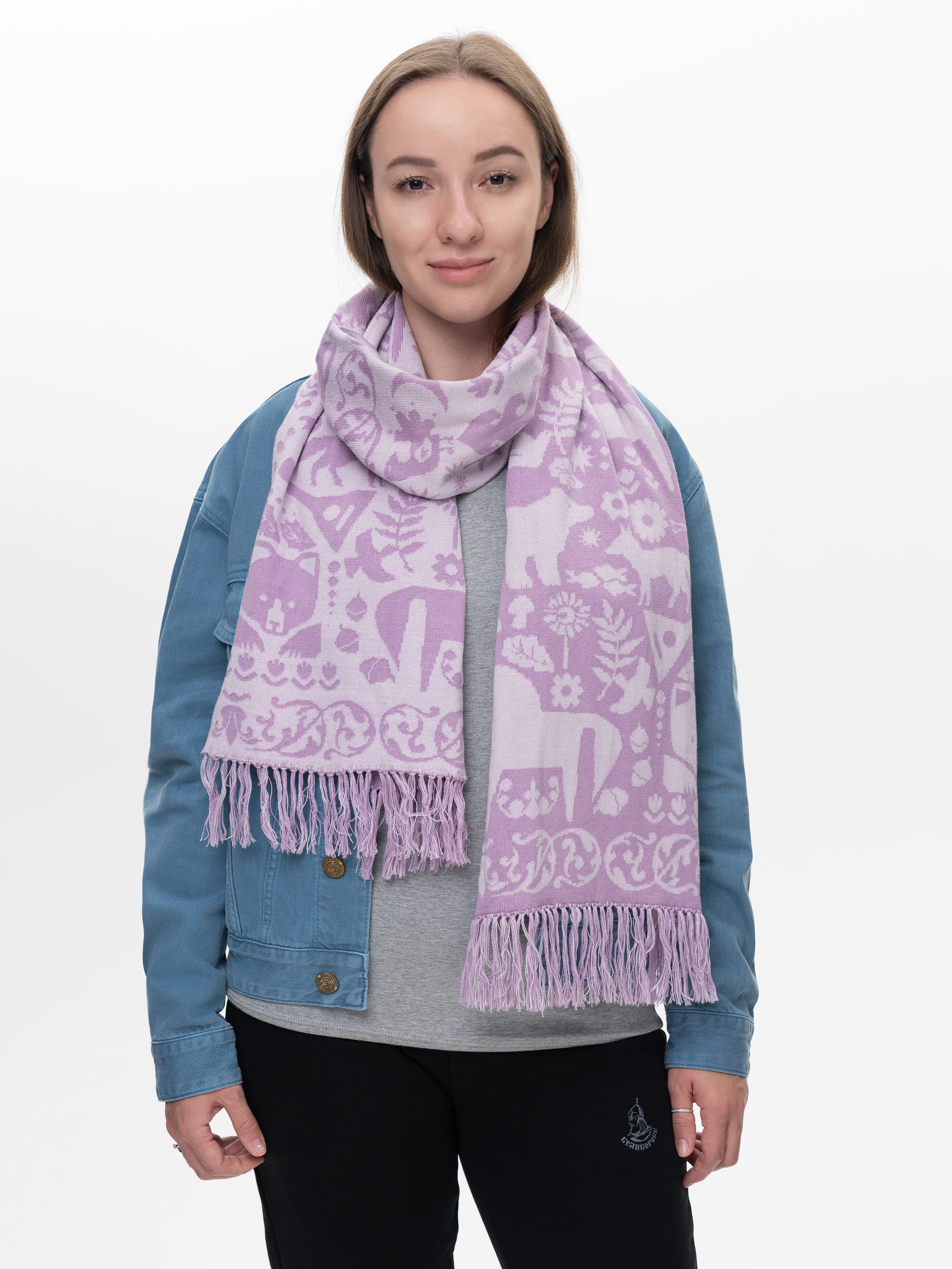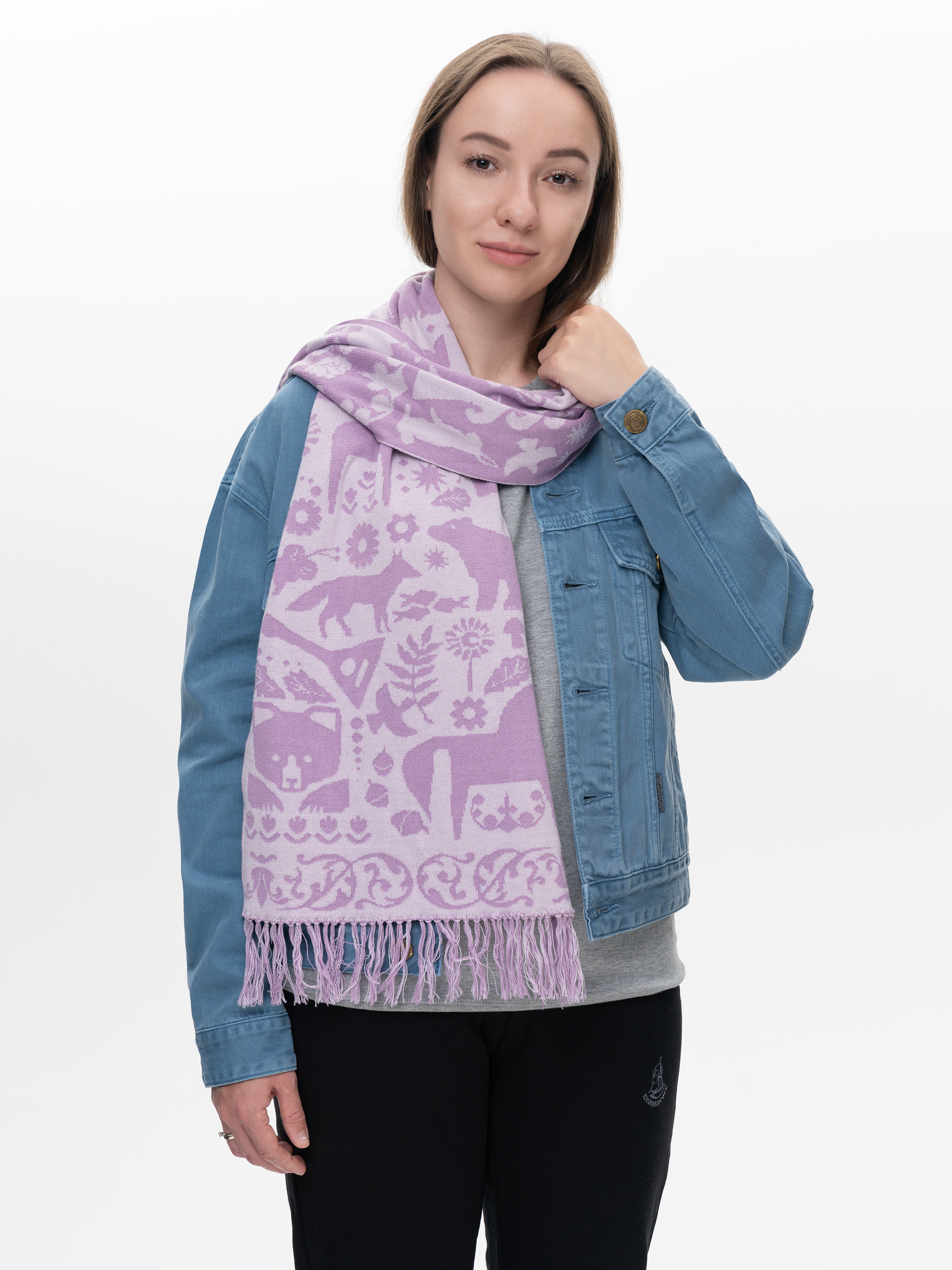 Шарф «Таинственный Лес» сиреневого цвета (С бахромой)