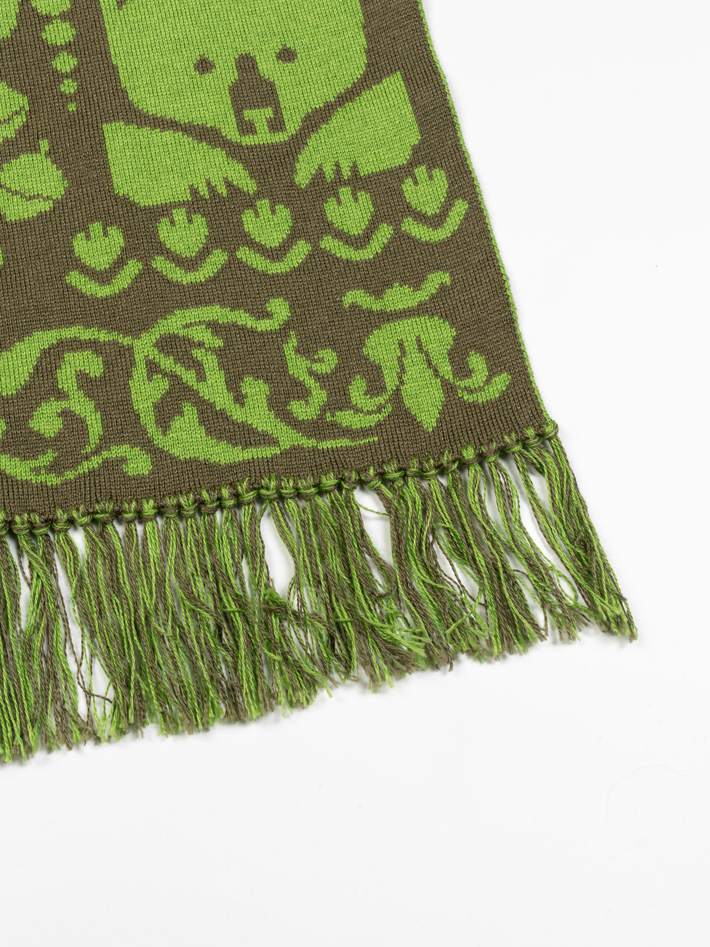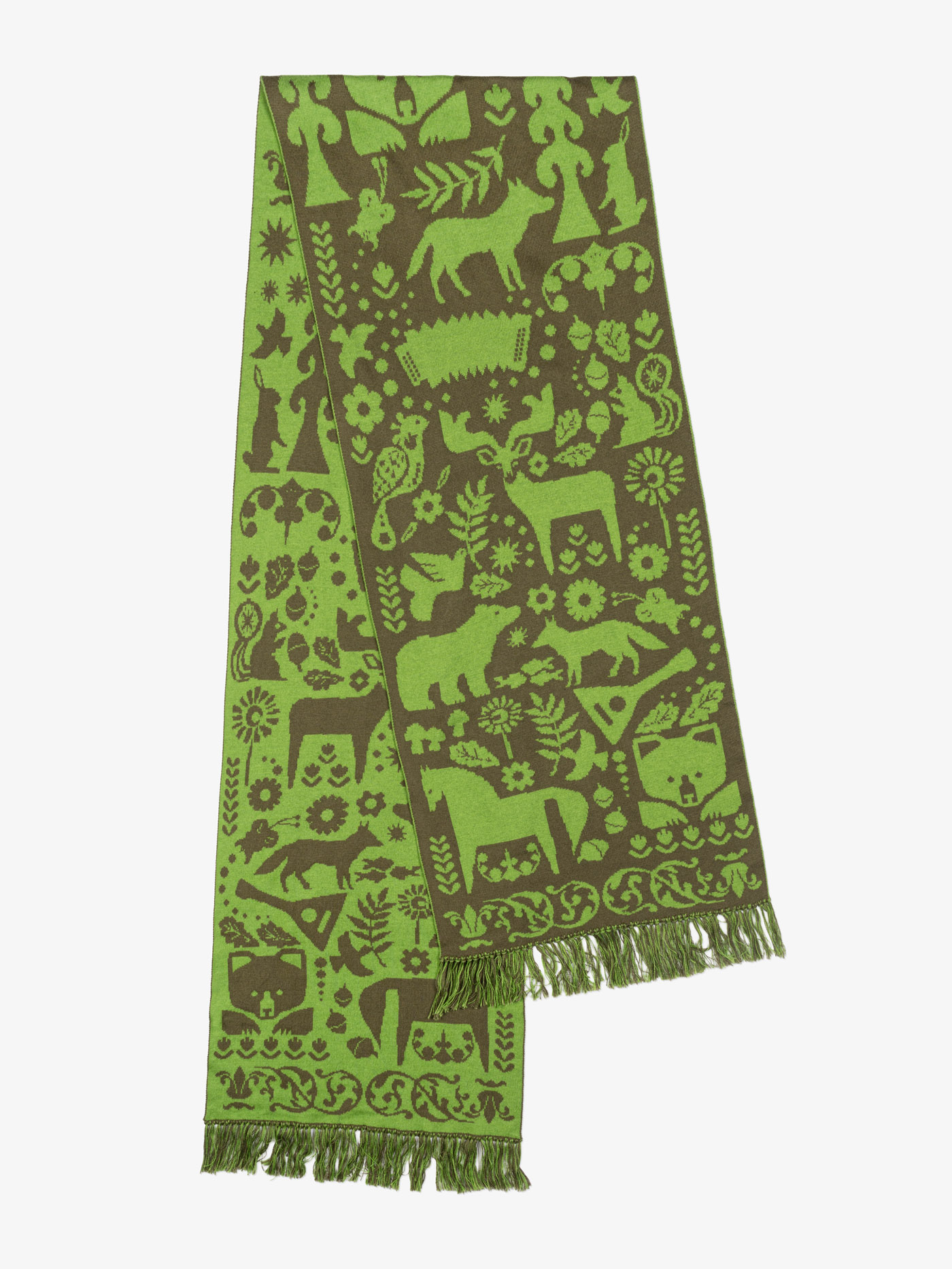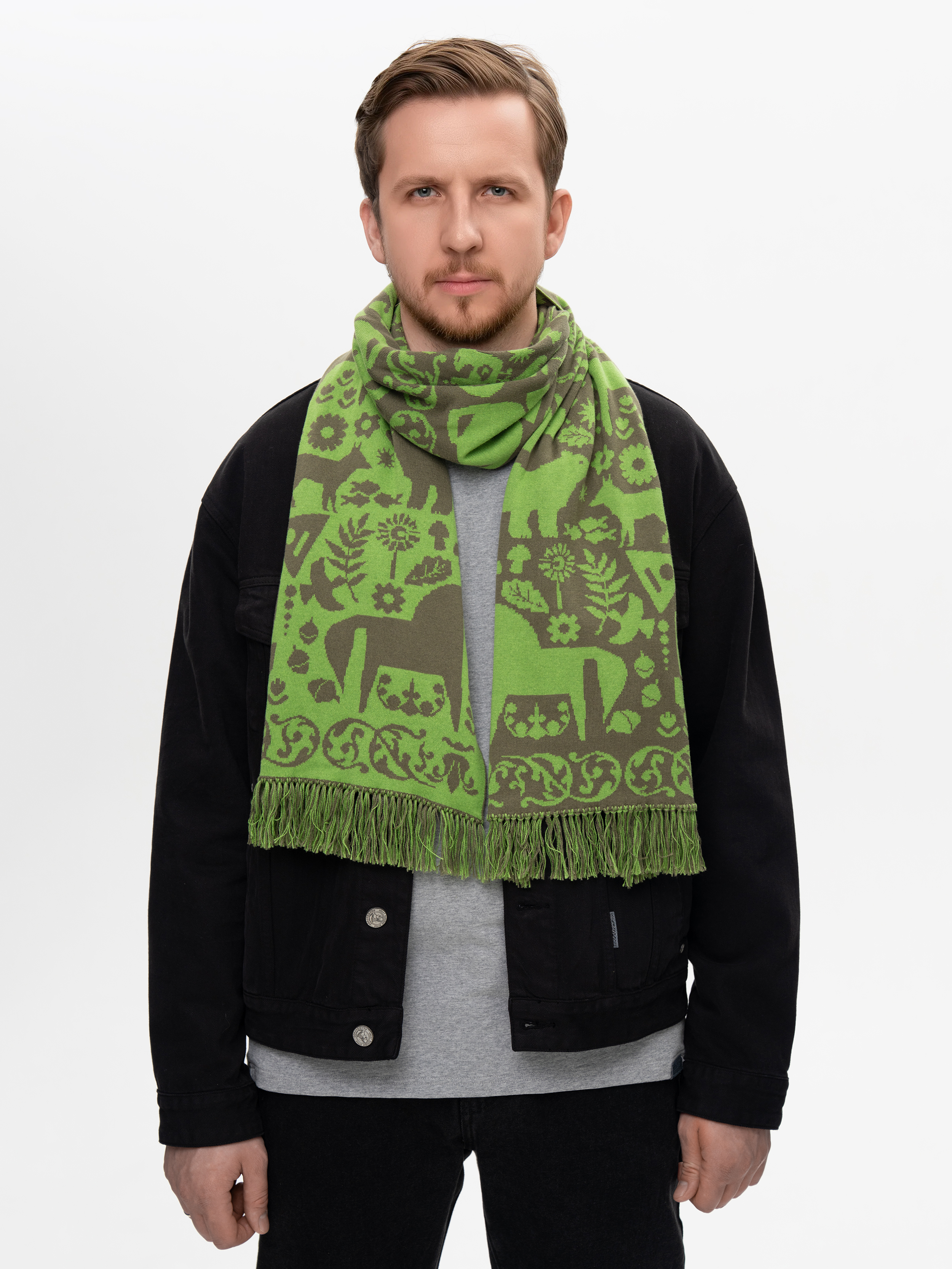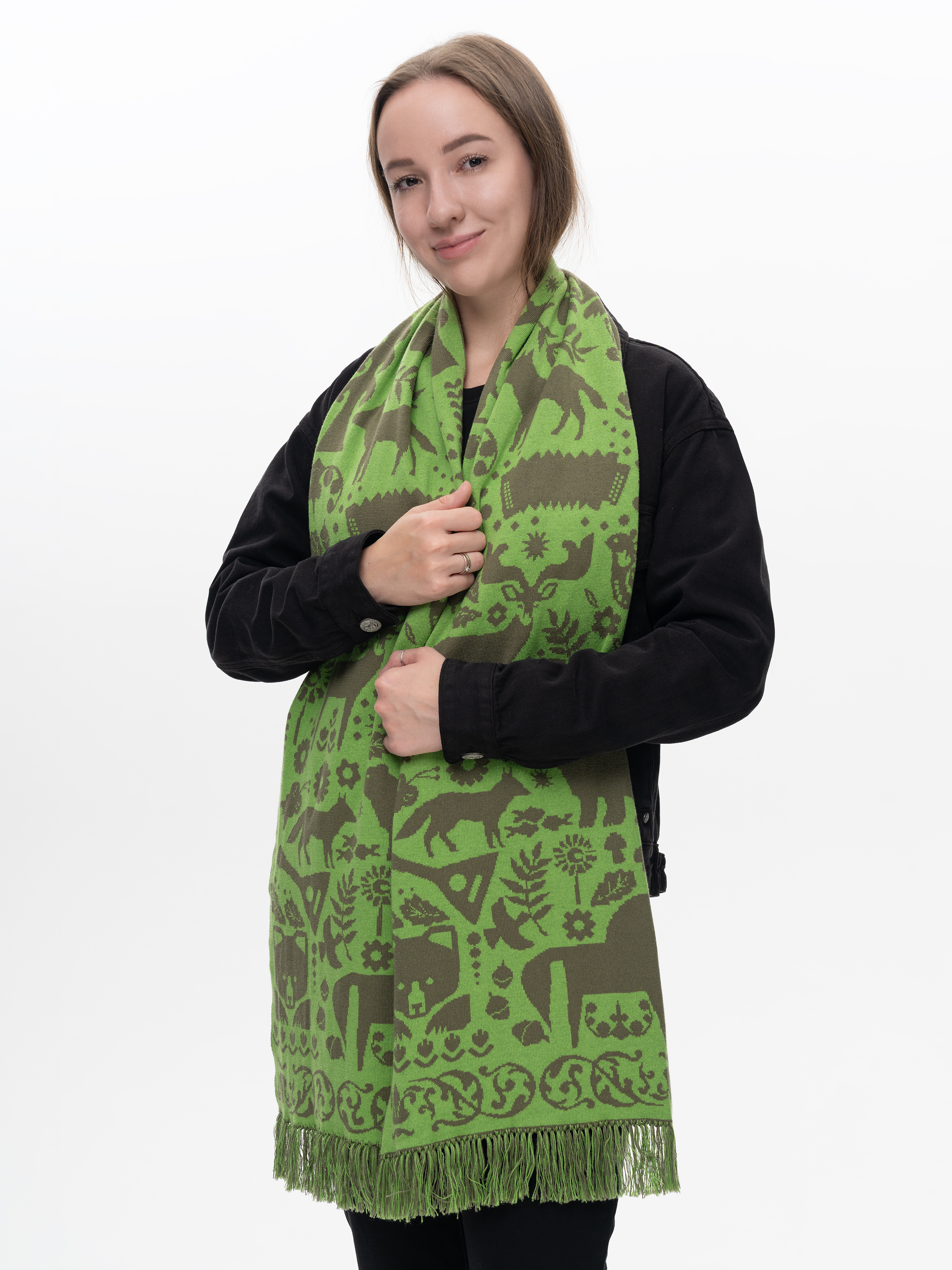 Шарф «Таинственный Лес» зелёного цвета (С бахромой)