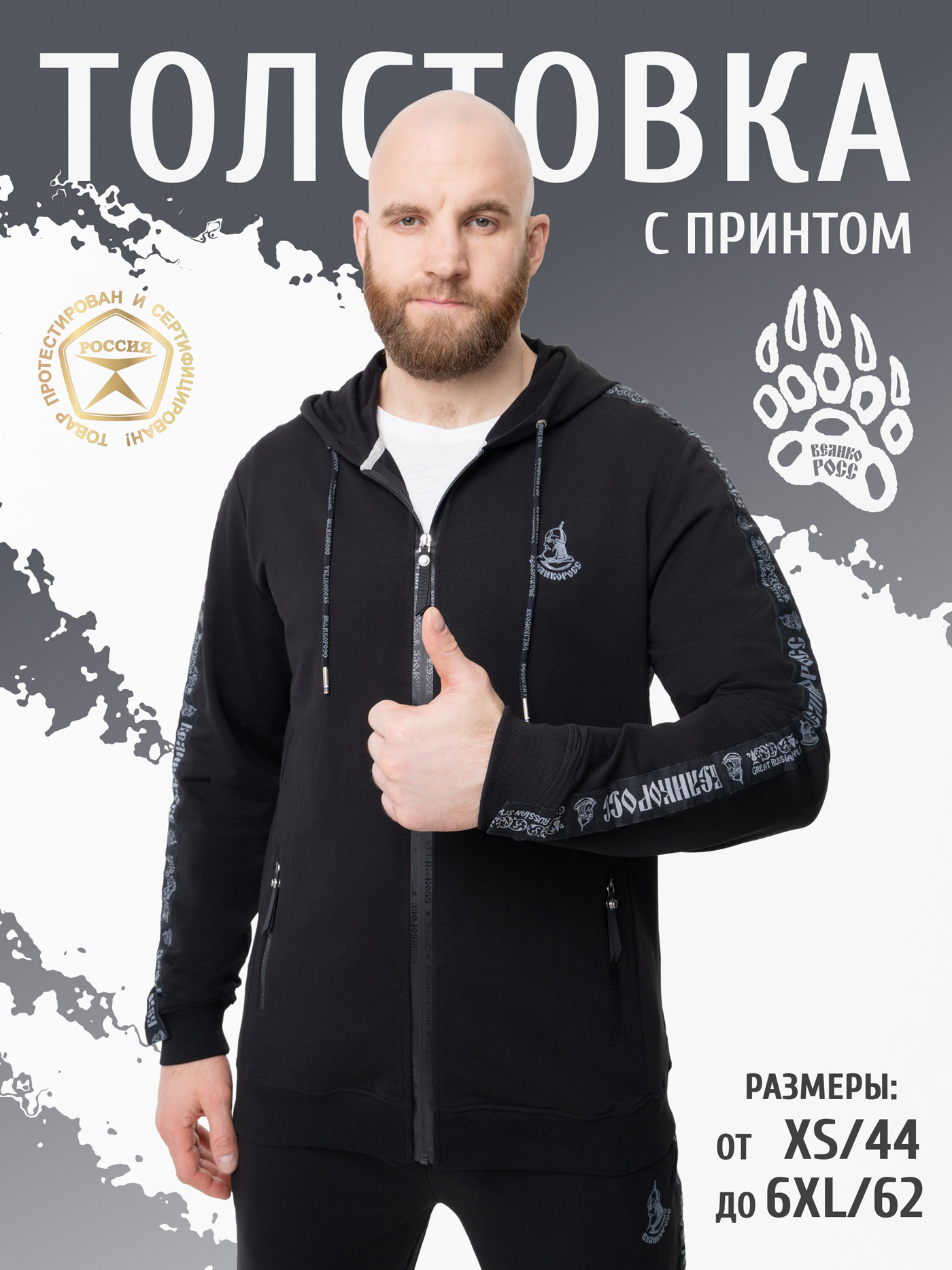 Отличная толстовка на молнии, подходит для прогулок и не только, удобная, стильная с огромной лапой на спине.
