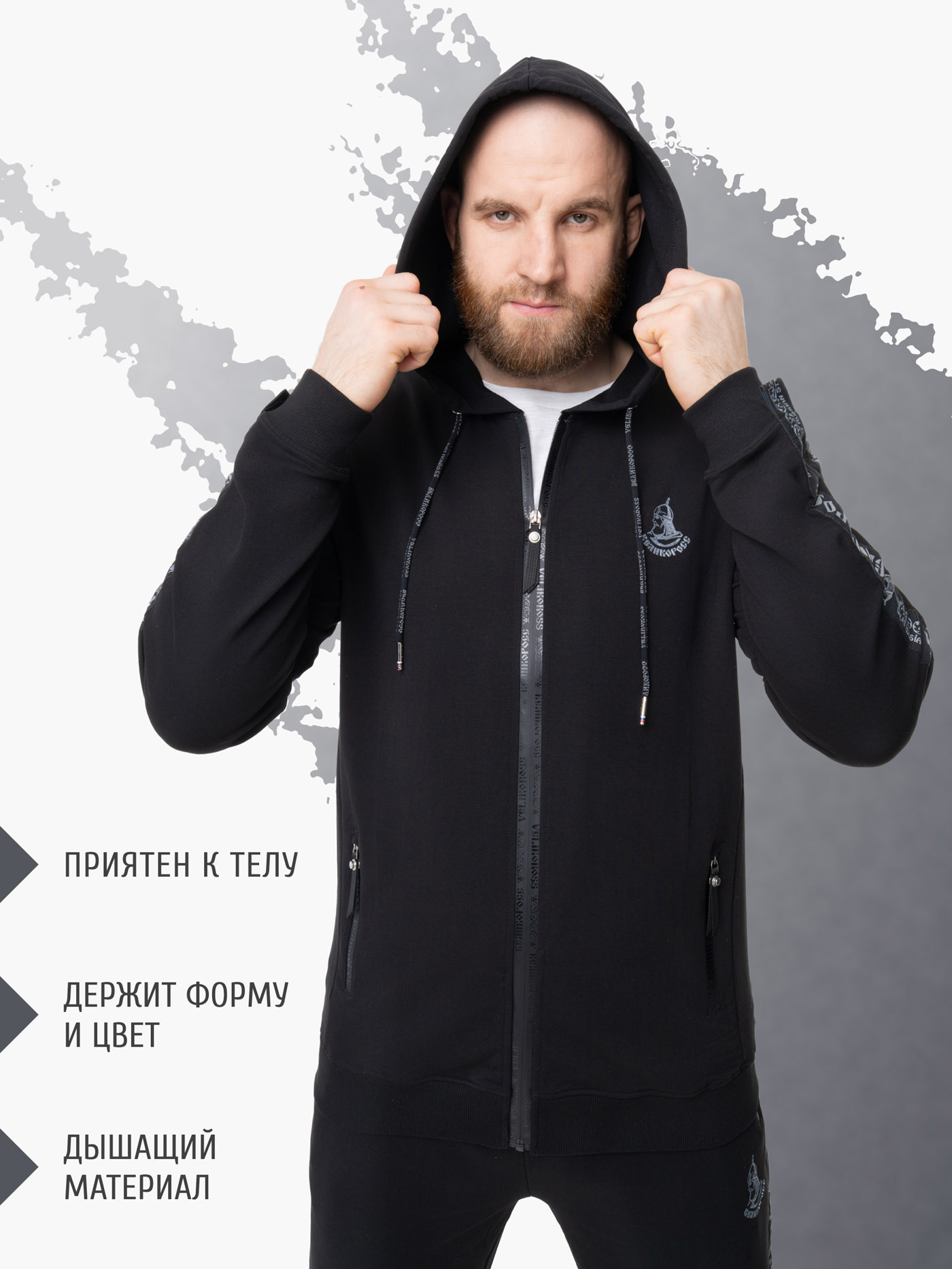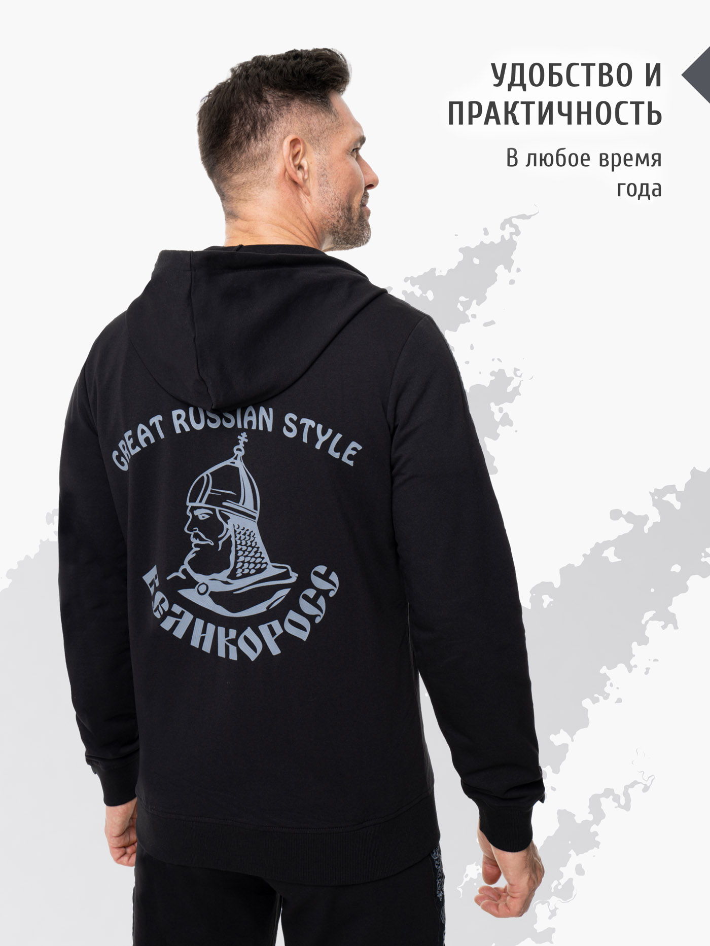 Толстовка отличного качество, ткань плотная и приятная к телу, классический цвет подходит к любой одежде. Спасибо великоросс!!!